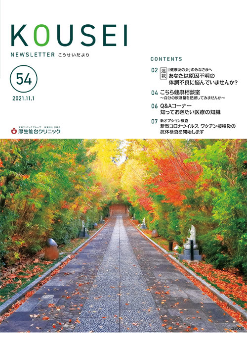 こうせいだよりは、受診者向けの広報誌です。手に取っていただいた方に、少しでもプラスになる情報、健康に気を付けるきっかけとなる内容をお届けしていきます。院内の待合室に設置していますので、ご自由にお取りください。